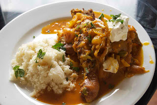 Turkish chicken with apricots, ginger, lemon, saffron and pistachios.