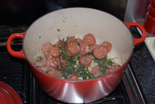 - Put ghee and chopped sage in pan and when hot pour in the sliced potatoes.
